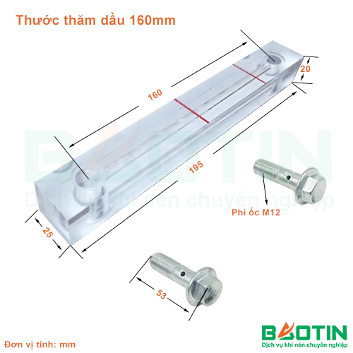Bảo Tín chuyên cung cấp thước thăm dầu máy nén khí 160mm và nhiều kích thước khác. Những sản phẩm mà chúng tôi cung cấp luôn đảm bảo chất lượng tốt nhất và giá cả phải chăng nhất. Sản phẩm sẽ được bảo hành từ 03-06 tháng. Đổi trả 1:1 nếu như sản phẩm có lỗi từ phía nhà sản xuất.